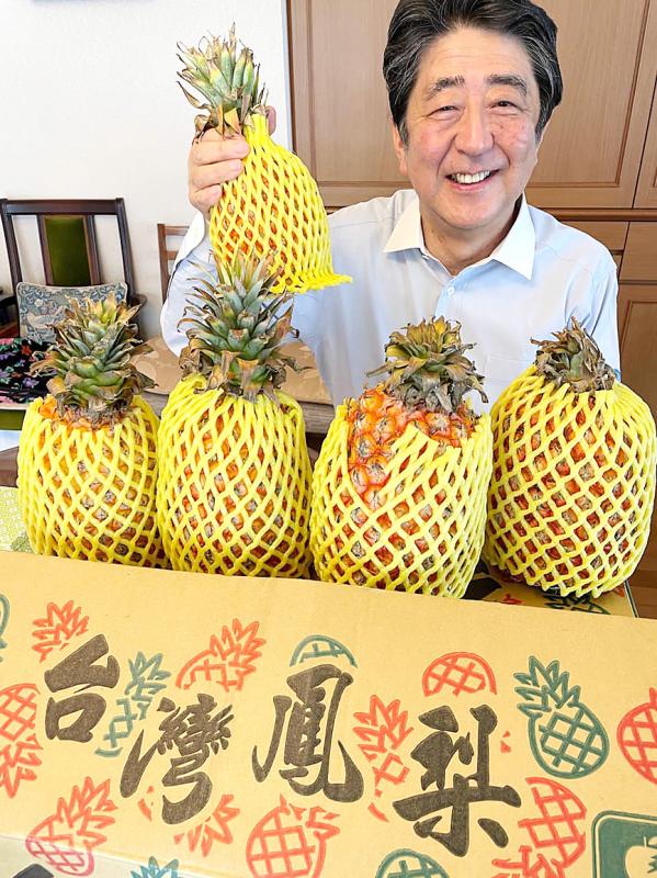 Pingtung County Commissioner Pan Men-an (潘孟安) wrote on Facebook that Abe strongly supported the county’s pineapples and groupers, and sent a letter to thank Pan in May after receiving pineapples grown in Pingtung.