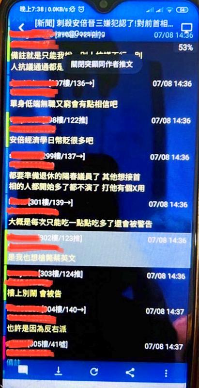 Police said that the man is also suspected of making threatening comments on PTT about Abe and the man suspected of killing the former Japanese leader in Naha, Japan, on Friday.