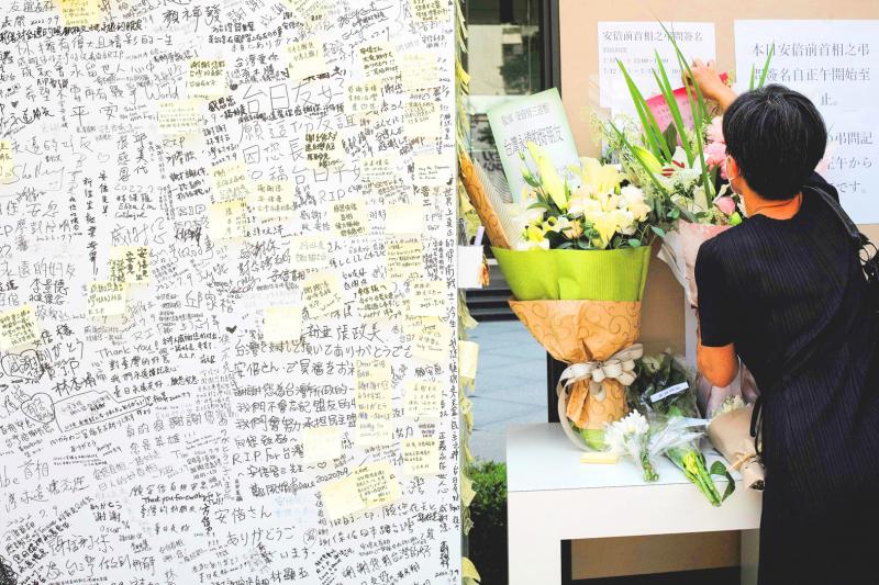 About 15,000 people have visited the Japan-Taiwan Exchange Association (JTEA) over the past week to pay their respects to former Japanese prime minister Shinzo Abe, who was assassinated during a campaign event in Nara, Japan, on July 8, Japan’s de facto embassy in Taiwan said late on Sunday.