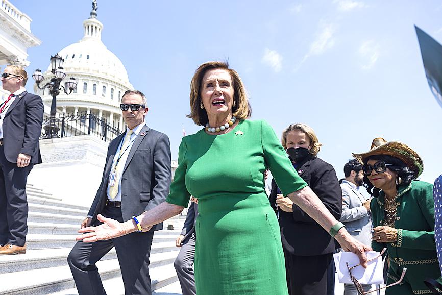 Pelosi held an online meeting with Vice President William Lai (賴清德) in January as he wrapped up a visit to the US and Honduras.