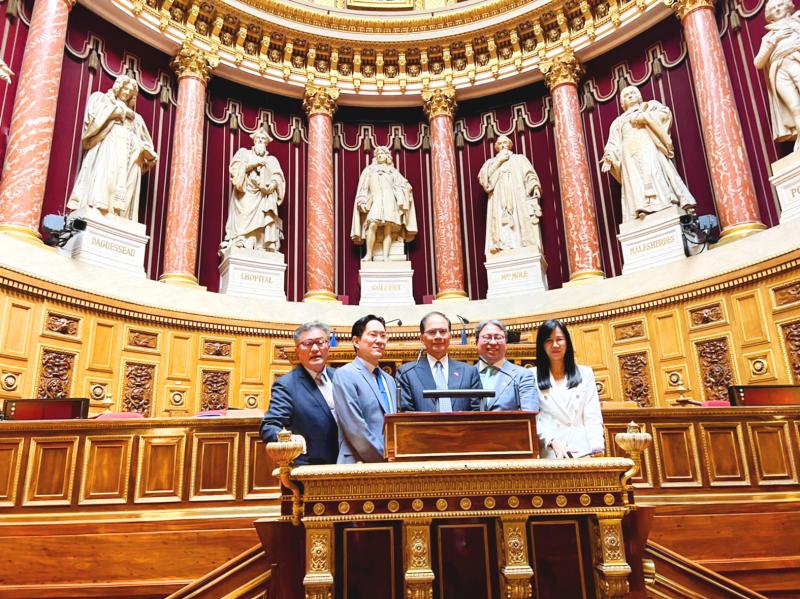The delegation was received by French senators Olivier Cadic and Alain Richard, who heads the Senate’s Taiwan Friendship Group, during a visit to Luxembourg Palace, which houses the Senate.