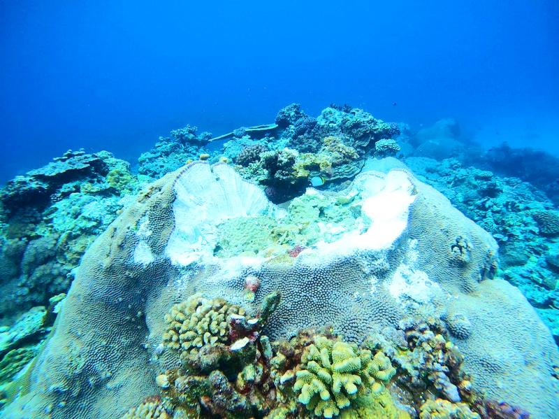 Divers last month discovered the damaged reefs at the Shilang Diving Area (石朗浮潛區).