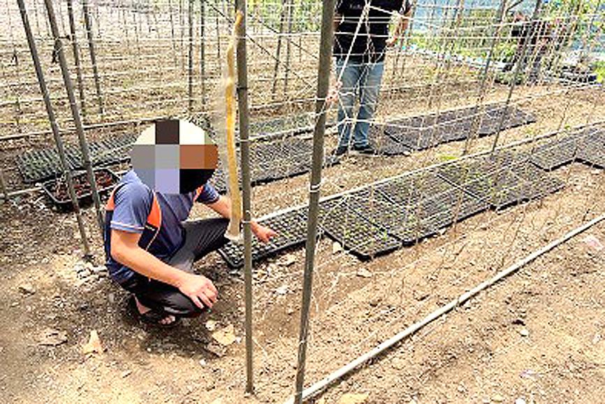 “We received information that someone was cultivating cannabis at a farm on the mountain, which led us to locate and surveil it,” Jhushan Police Chief Wu Yung-chieh (吳詠傑) told a news conference.