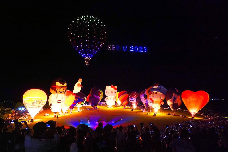 Taitung County Commissioner Yao Ching-ling (饒慶鈴) said the annual festival, which was held for the 12th year, featured drone light shows for the first time.
