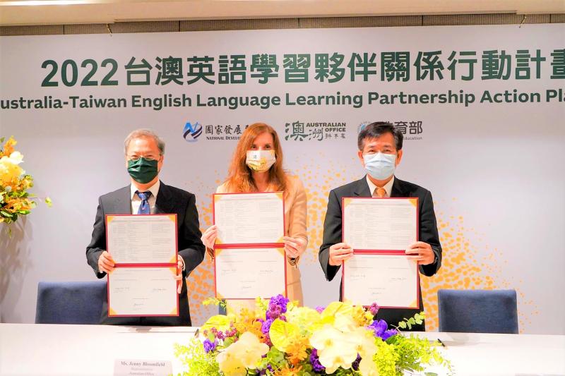 Taiwan and Australia are to collaborate on language courses and training teachers after the Ministry of Education, the National Development Council and the Australian Office in Taipei yesterday signed the Taiwan-Australia English Learning Partners Action Plan.