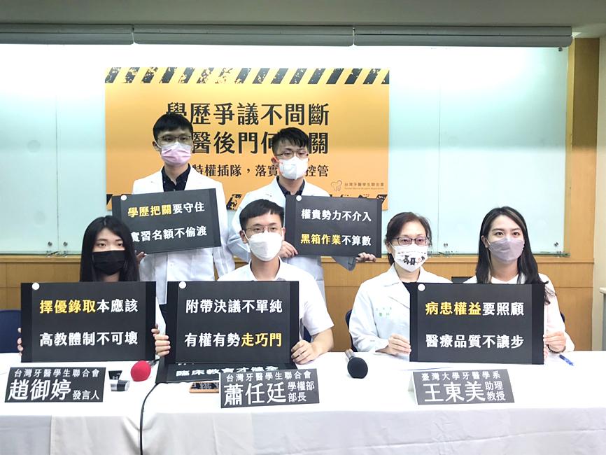 The Taiwan Dental Student Association yesterday criticized an amendment to the Physicians Act (醫師法), saying that it would allow too many aspiring dentists with foreign degrees to travel to Taiwan for internships.