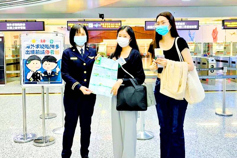 “When gathering evidence and tracking down members of this group, we managed to stop a female victim from boarding a flight to Cambodia,” Huang said at a news conference yesterday.