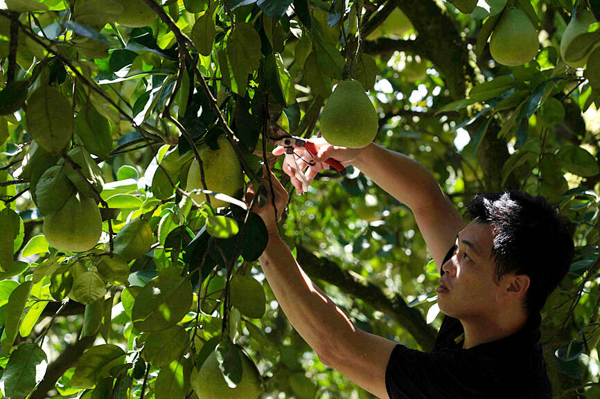 His farm in Hualien’s Ruisui Township (瑞穗) has dispatched about 180,000kg of the citrus fruit to China every year for several decades.