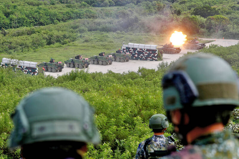 On Tuesday, Taiwanese troops carried out dramatic nighttime live-fire drills, with tanks illuminated by sudden flashes of flame as they fired shells while tracer rounds arced across the night sky.