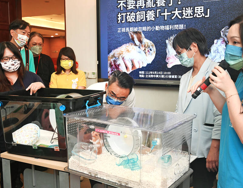 Rabbits, hedgehogs and hamsters are easy to acquire, but many owners are unaware of how to properly care for them, resulting in abuse and sometimes abandonment, advocates told a news conference at the Legislative Yuan in Taipei.