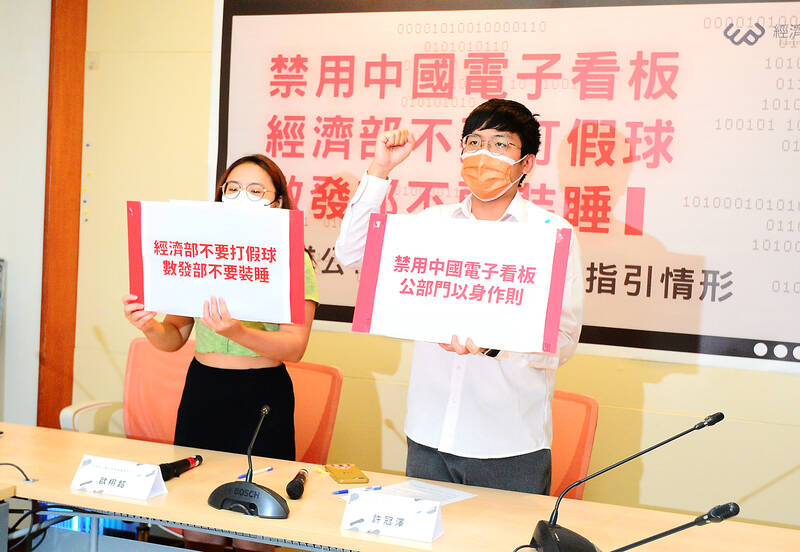 Officials at the Ministry of Economic Affairs and other ministries have neglected their duty, failing to enforce the regulations that prohibit the use of surveillance cameras, electronic displays, telecom devices and software produced in China, Hsu said.