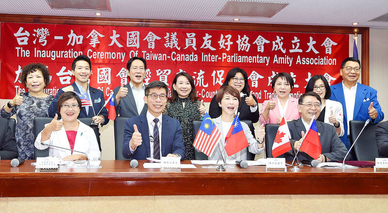 Lawmakers launched the Taiwan-Canada Inter-Parliamentary Amity Association at the legislature yesterday to promote closer ties and expand bilateral trade with Canada.