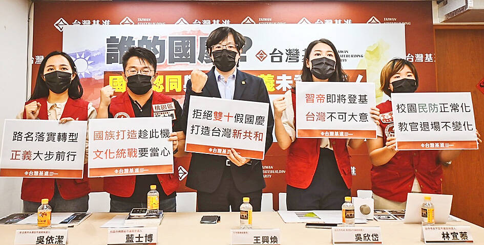 The Taiwan Statebuilding Party also disagrees with the Democratic Progressive Party’s efforts to remove the term ROC from holiday signage and promotion materials by using “Taiwan National Day” instead, Wang said.