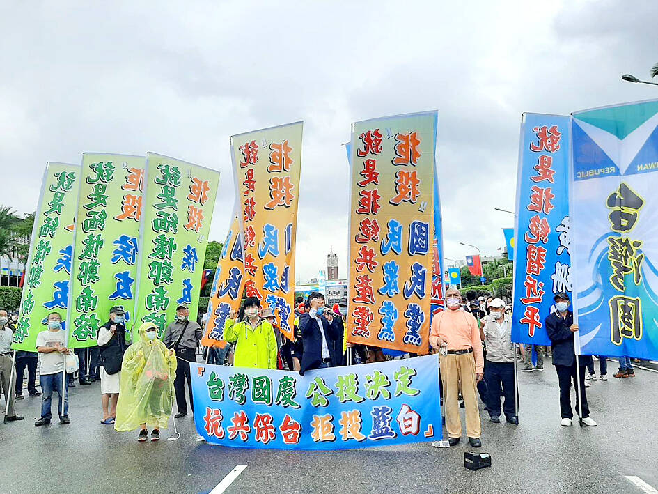 Separately, members of the Taiwan Republic Office and allied pro-Taiwanese independence groups protested on Ketagalan Boulevard outside a cordoned off area in front of the Presidential Office Building during a Double Ten National Day ceremony yesterday morning.
