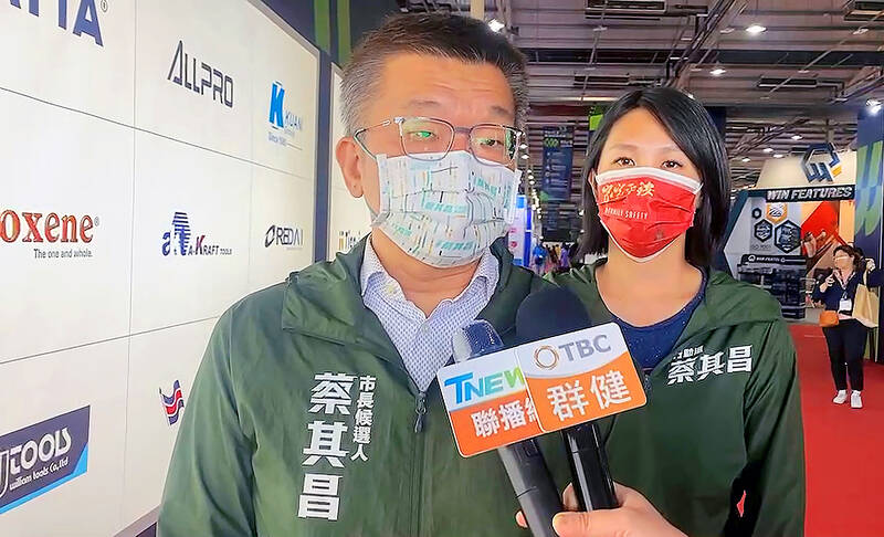 In his role as Taichung mayoral candidate, Tsai said his platform includes expediting the acquisition of land for new industrial corridors and their construction.