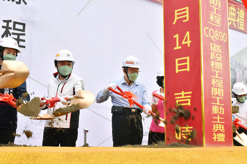 Taipei Mayor Ko Wen-je (柯文哲) and New Taipei City Mayor Hou You-yi (侯友宜) broke ground on a section of a planned Mass Rapid Transit (MRT) line in New Taipei City’s Shulin District (樹林) on Friday.
