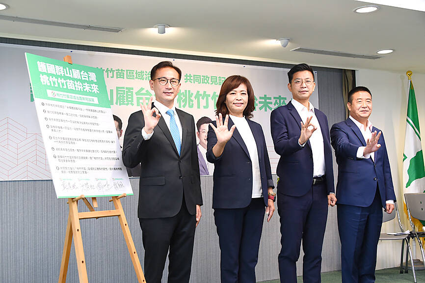 Taoyuan mayoral candidate Cheng Yun-peng (鄭運鵬), Hsinchu mayoral candidate Shen Hui-hung (沈慧虹), Hsinchu County commissioner candidate Chou Chiang-chieh (周江杰) and Miaoli County commissioner candidate Hsu Ting-chen (徐定禎) promised to solve problems related to water and electricity supply that have long affected the local semiconductor industry.