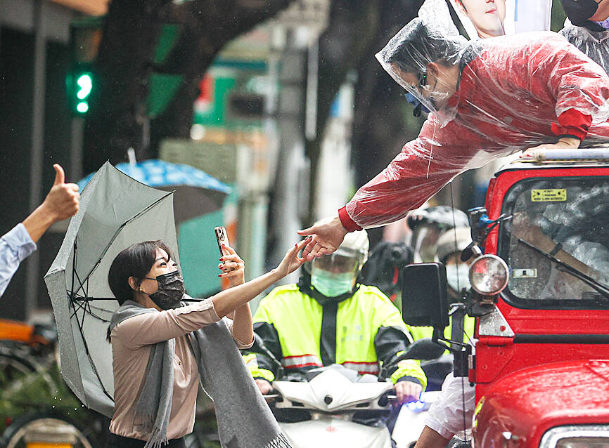 Chiang earlier toured Taipei’s 12th district in a campaign truck as part of final canvassing while playing up his moderate image.
