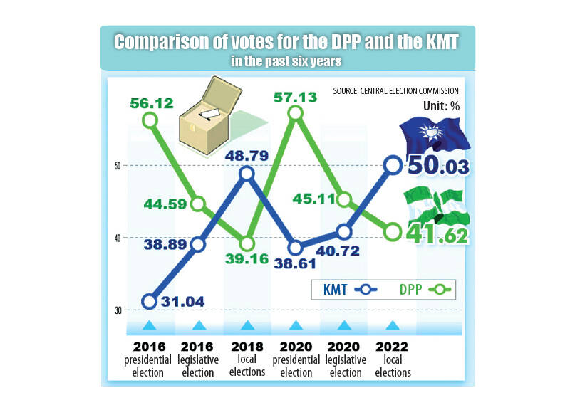 Despite that, the disappointment among DPP supporters was such that they overlooked the KMT’s shortcomings. The KMT is still the same KMT, but the DPP has lost touch with what voters expect from it.