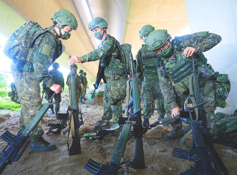 Under the program, some reservists undergo two weeks of intensive training twice in eight years, rather than the existing five-to-seven-day regimen four times every eight years, with the aim of improving the combat readiness of Taiwan’s reserve forces.