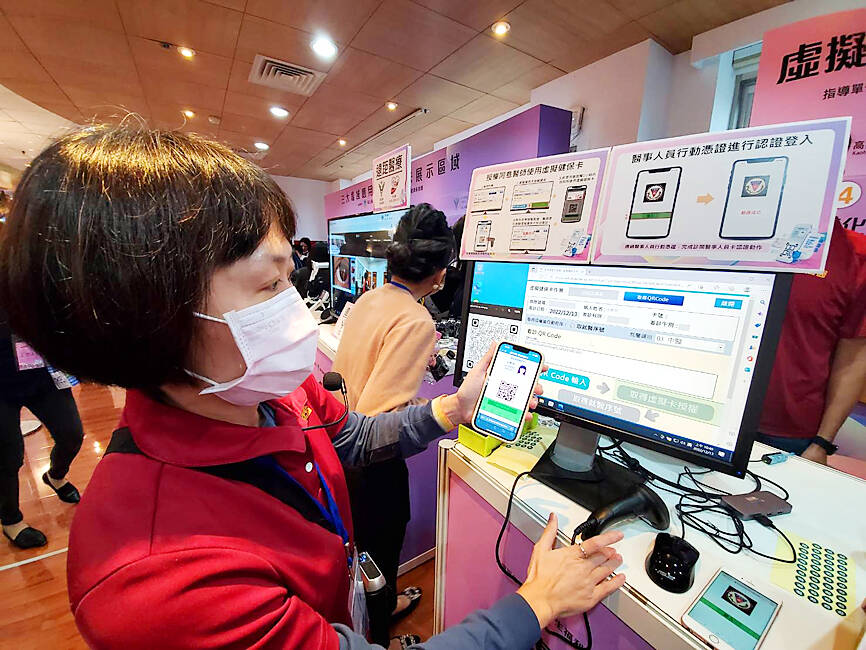 Virtual card users only need to show a QR code on their smartphone when booking an appointment or seeking medical treatment, avoiding problems such as when people forget to bring their card or the card cannot be read, administration Director-General Lee Po-chang (李伯璋) said.