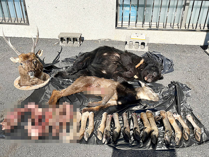 A man surnamed Yen (顏), a resident of Pingtung’s Wutai Township (霧台), was apprehended during a police raid on Friday last week, after reports of illegal poaching and killing of wild animals.