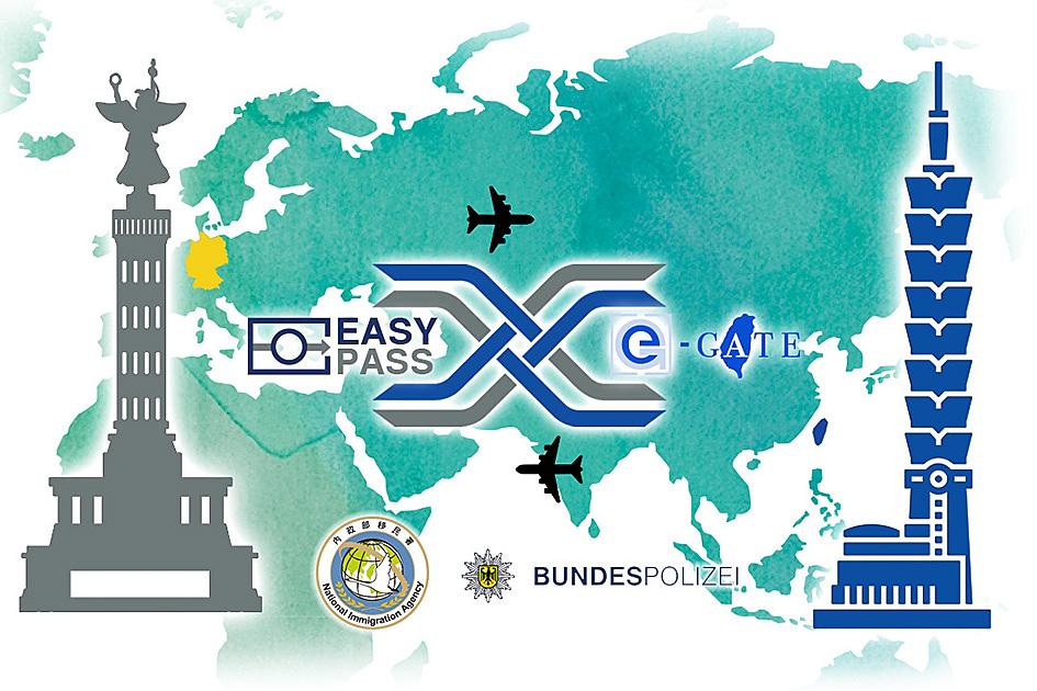 The program allows holders of Taiwanese passports to use Germany’s EasyPass border control system, and holders of German passports to use Taiwan’s e-Gate service, NIA Director Chung Ching-kun (鐘景琨) said.
