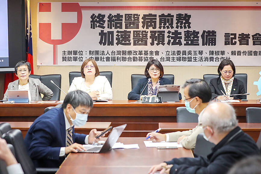 The Taiwan Healthcare Reform Foundation and legislators yesterday urged the government to enact the Medical Accident Prevention and Dispute Settlement Act (醫療事故預防及爭議處理法), which was passed in May, but will not take effect until 2024.