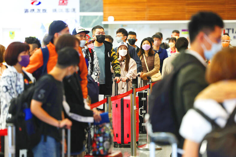 Incoming traveler numbers this month are expected to reach 26 to 31 percent of pre-pandemic levels, Providence University Department of Tourism associate professor Huang Cheng-tsung (黃正聰) said, citing estimates from Taiwan Taoyuan International Airport.