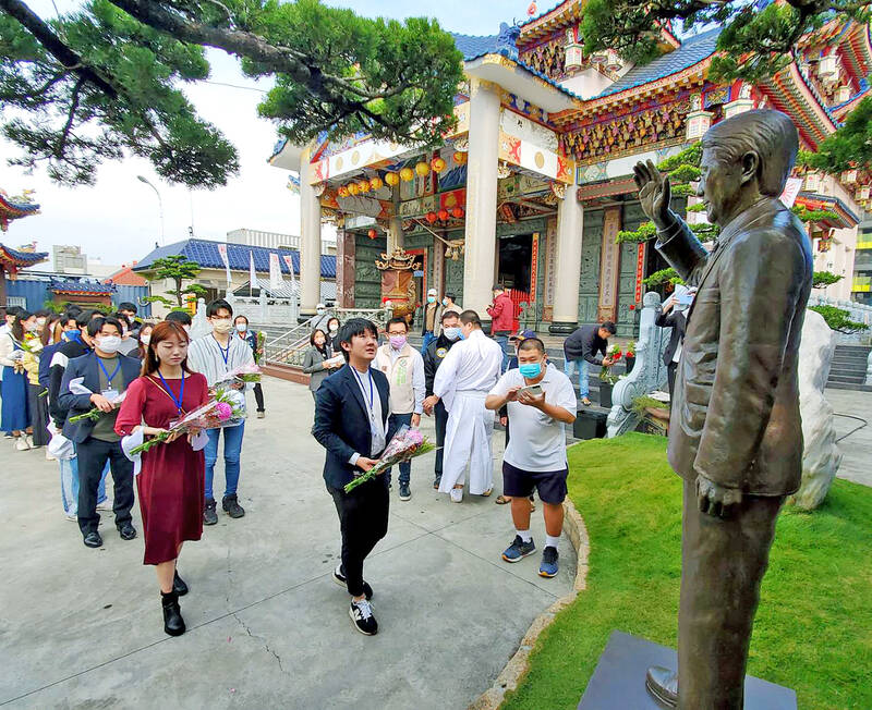 The statue, which was unveiled in September last year, is displayed in a garden of remembrance created by Hongmaogang’s (紅毛港) Baoan Temple (保安堂) in Kaohsiung’s Fengshan District (鳳山) in memory of him.