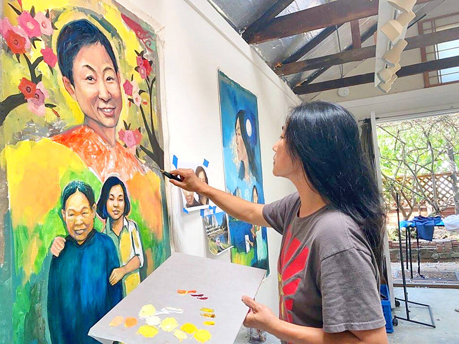 Moo said she spent the past three years working on paintings that aim to share the stories of immigrant women, and relay their courage and strength to the world, particularly amid a rise in hate crime against Asian-American women during the COVID-19 pandemic.