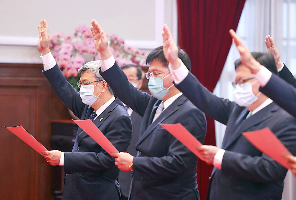 The new Cabinet, led by Premier Chen Chien-jen (陳建仁), and new Presidential Office appointments were sworn into office yesterday morning.