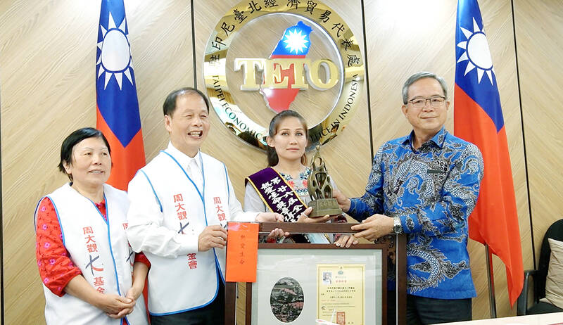 She was awarded the prize by Chou Chin-hua (周進華), founder of the Taiwan-based Chou Ta-kuan Cultural and Educational Foundation, in Jakarta on Tuesday last week.