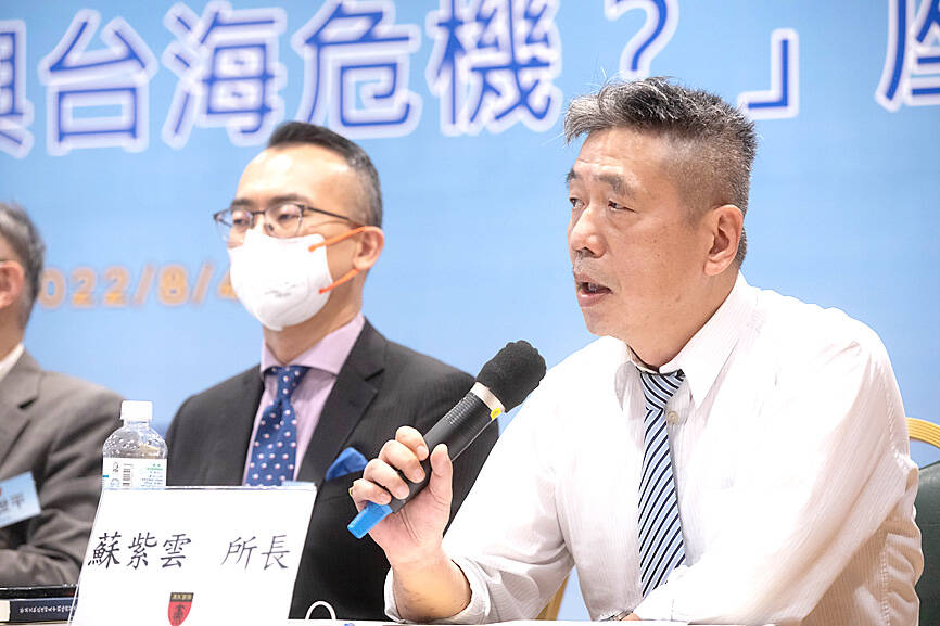 Institute of National Defense and Security Research fellow Su Tzu-yun (蘇紫雲) said that the war in Ukraine highlighted the importance of being ready for war.