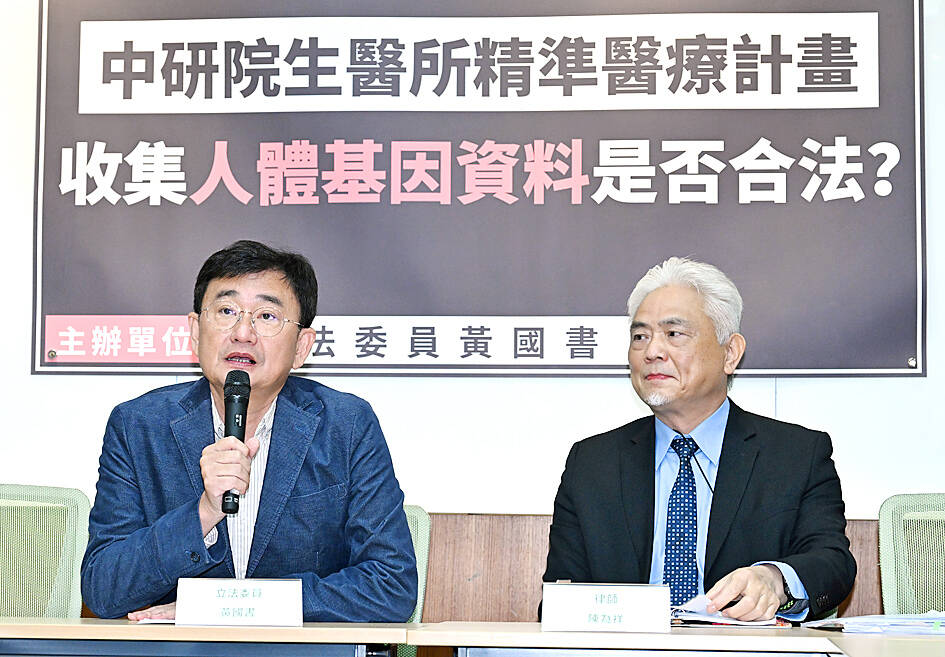 The Taiwan Precision Medicine Initiative led by the Institute of Biomedical Sciences at Academia Sinica gives the institute access to the genetic information of more than 600,000 people, independent Legislator Huang Kuo-shu (黃國書) said.