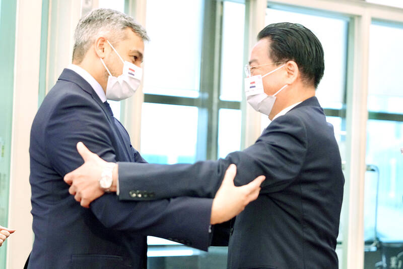 He thanked Taipei for assisting his country during his tenure, saying that Paraguay would continue to work with Taiwan based on the shared values of “freedom, democracy and human rights.”
