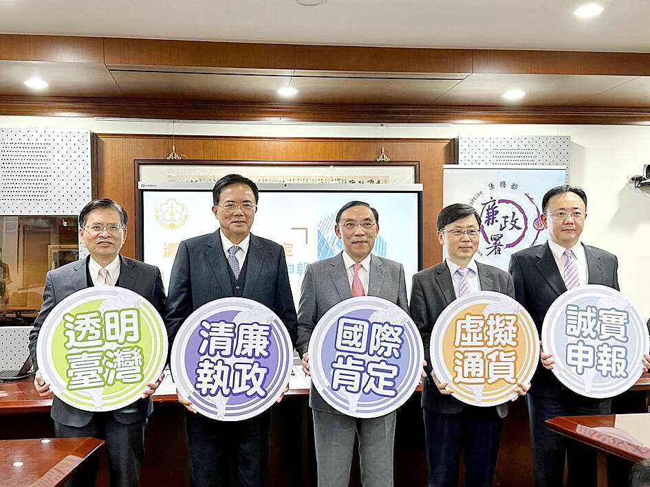 He said the government has been enforcing the Act on Property Declaration by Public Servants (公職人員財產申報法) that requires civil servants and elected officials — including lawmakers, city mayors and county commissioners, and city and county councilors — to declare their assets, which now includes cryptocurrency and other virtual assets, he said.