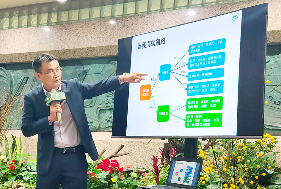 COA Minister Chen Chi-chung (陳吉仲) told a news conference that a cold front and chickens’ molting cycles caused domestic egg production to fall to 22.4 million from 22.6 million last week, adding that there is a daily deficiency of 500,000 to 800,000 eggs per day.