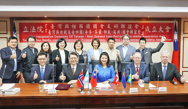 Two parliamentary associations to facilitate exchanges with lawmakers abroad were inaugurated at a ceremony at the Legislative Yuan in Taipei yesterday — the Taiwan-New Zealand Inter-Parliamentary Amity Association and the Taiwan-Four Nordic Countries Parliamentary Friendship Association.