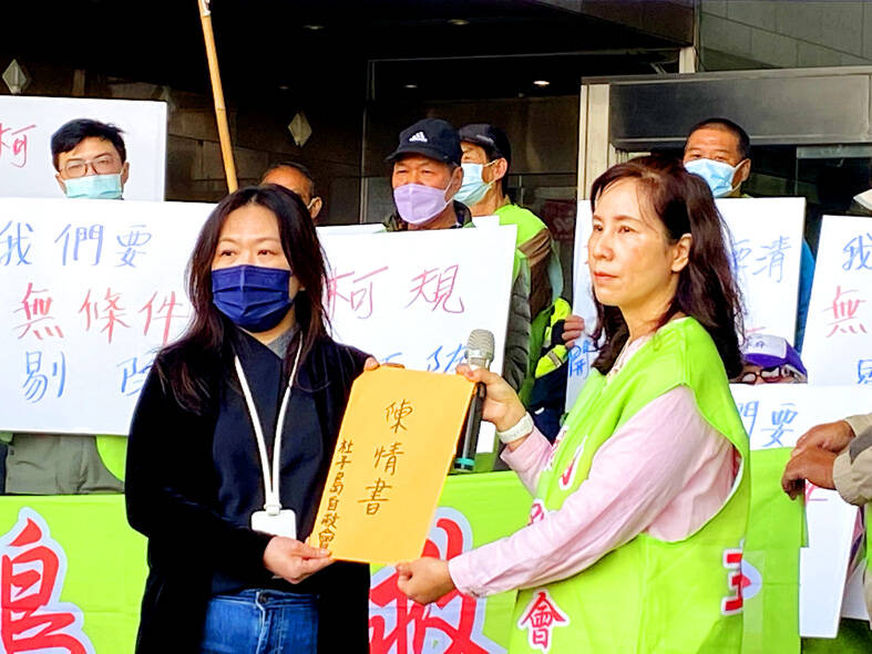 Taipei Department of Land Administration Deputy Commissioner Wang Jui-yun (王瑞雲), who received a written petition from the protesters, said she would convey their demands to Chiang.