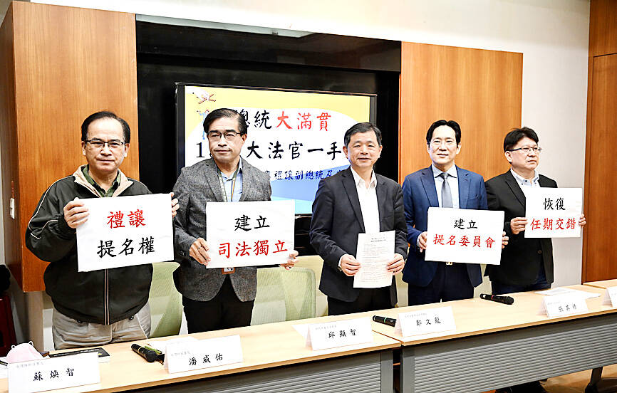 Tsai should allow the vice president, the Legislative Yuan speaker, opposition parties and an independent body to select one candidate each, Cheng said, adding that this would ensure that diverse opinions are represented in the court.