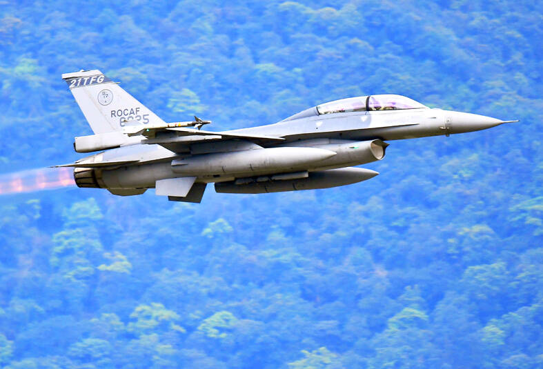 The air force’s backbone fighters — F-16Vs, Mirage-2000 5s, domestically made Indigenous Defense Fighters and P-3C submarine-hunting aircraft — and the navy’s S-70C anti-submarine helicopters and drones have been dispatched from bases around the country to take part in joint drills since their commencement at 6:22am yesterday, a military source said.