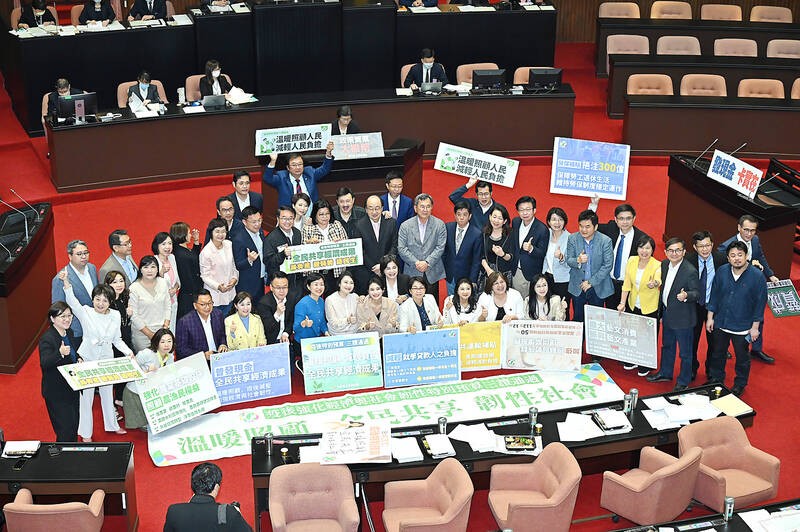 Speaking after the bill’s passage, KMT caucus whip William Tseng (曾銘宗) said he hopes the cash handouts help Taiwanese, despite the failure of his party to increase the amount.