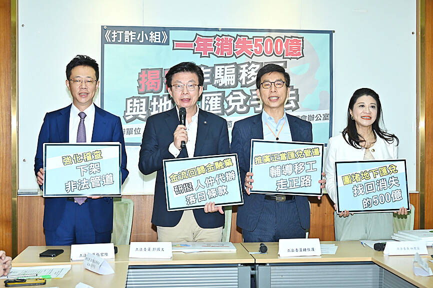 The lawmakers urged the Financial Supervisory Commission and Ministry of Labor to help migrant workers find legal remittance service providers via communications campaigns in the workers’ languages, adding that booklets of such information could be handed to newly arrived migrant workers.