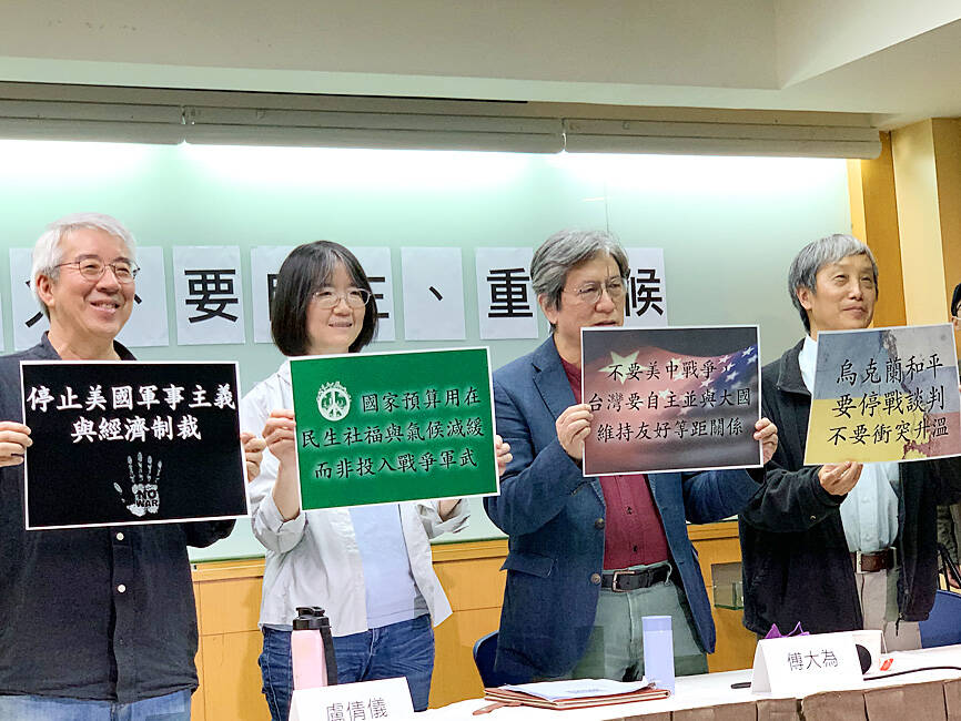 Taiwan should work toward averting a US-China war by maintaining positive ties that are equally centered between both countries, an anti-war group of 37 active and retired academics urged in a statement.
