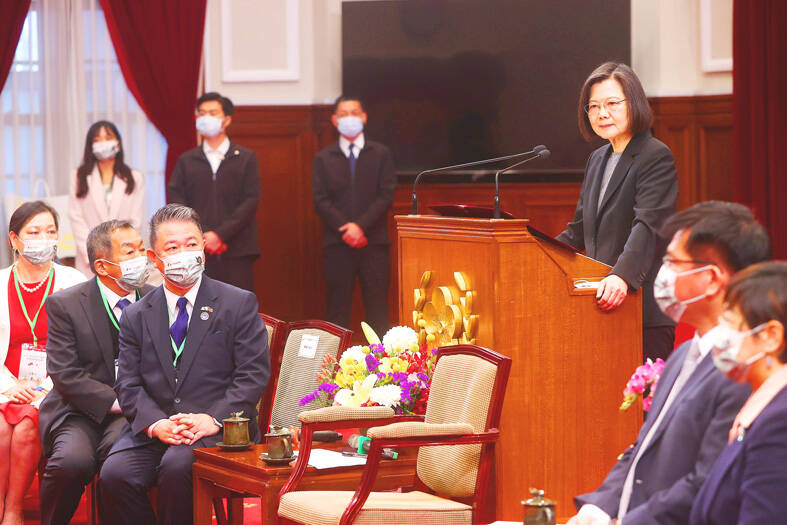 Tsai encouraged members of the association to join the “Three Major Programs for Investing in Taiwan” that the government launched in 2019, including its “Action Plan for Welcoming Overseas Taiwanese Businesses to Return to Invest in Taiwan.”