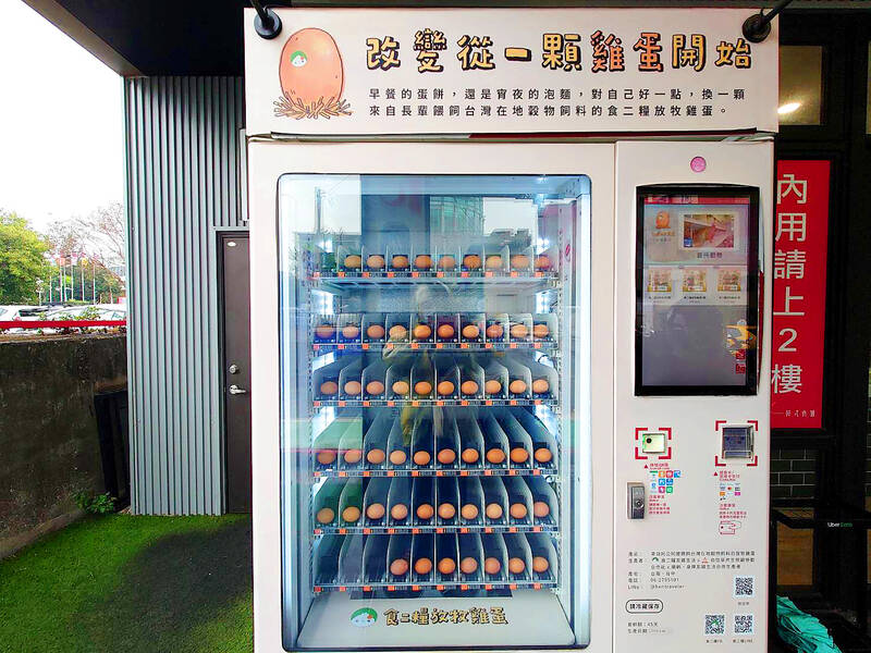 A vending machine in Tainan has become a popular attraction for people who enjoy taking photographs due to the unique way it dispenses its commodity — eggs.