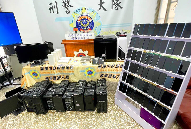 A raid on Shen’s unit last week led to the confiscation of 108 mobile phones, 10 computers and a telecommunication network systems, said Lin Chien-chun (林建均) of the Kaohsiung Police Department’s Criminal Investigation Corps.