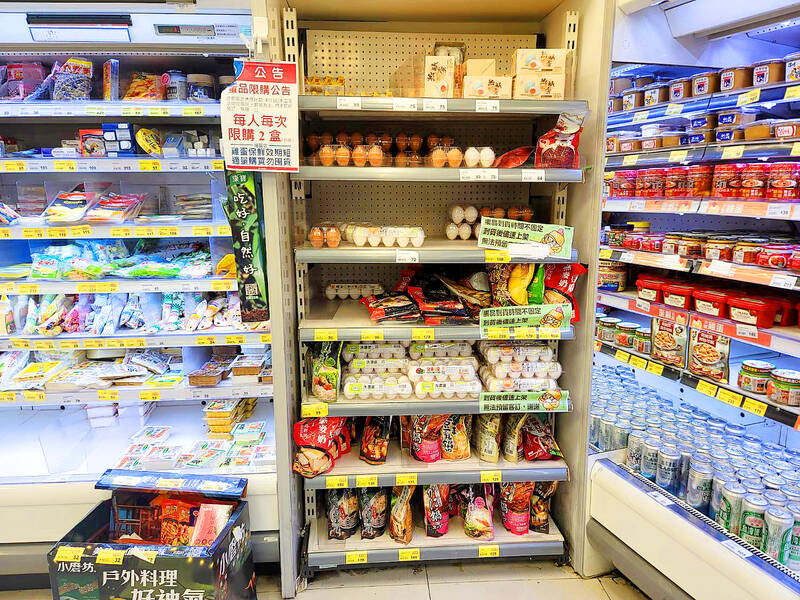 Department of Animal Industry Deputy Director Chiang Wen-chuan (江文全) said that 50 percent of domestic eggs are made available to the restaurant and food industries, while 25 percent go to convenience stores and supermarkets, 15 percent to schools and the military, and 5 percent each to traditional markets and smaller stores.