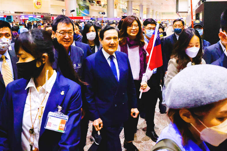Before Ma left for China, there were rumors that Chinese Vice Premier Ding Xuexiang (丁薛祥) would welcome Ma at the airport, and some had guessed that he would be greeted by Chinese Communist Party (CCP) Politburo Standing Committee member Wang Huning (王滬寧), who met Chinese Nationalist Party (KMT) Vice Chairman Andrew Hsia (夏立言) in Beijing in February, Cross-Strait Policy Association secretary-general Wang Zhin-sheng (王智盛) said.
